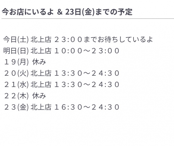 今お店にいるよ & 23日(金)までの予定