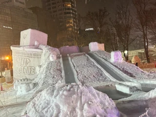 最近は大きい雪像にプロジェクションマッピングを